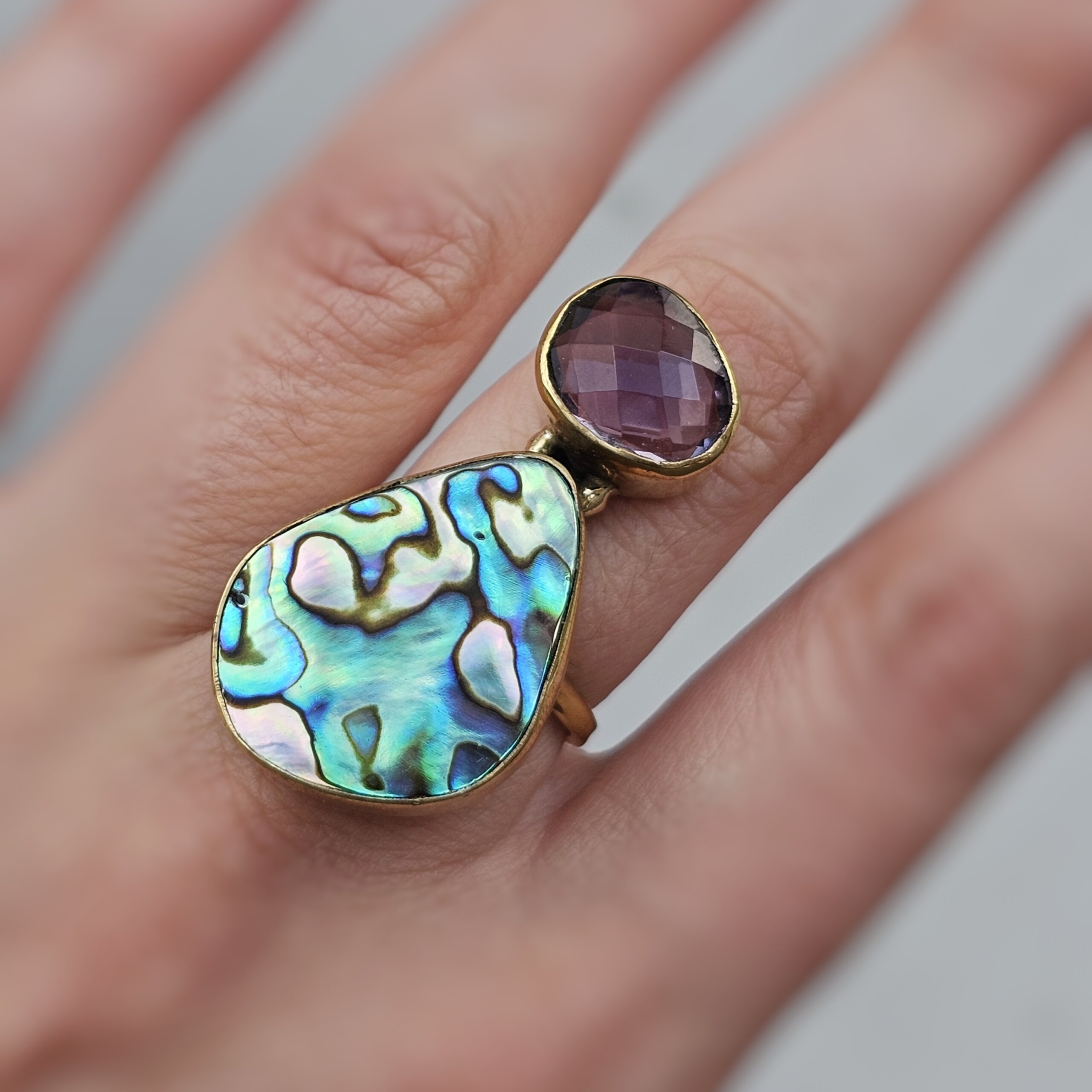 Ametisto ir perlamutro žiedas, 18.5 dydis